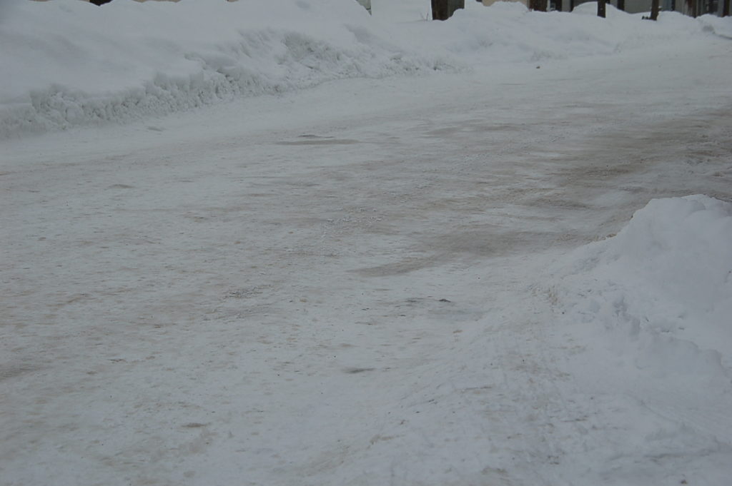 当院前(札幌市西区八軒)の道路も再度冬モードになりました。